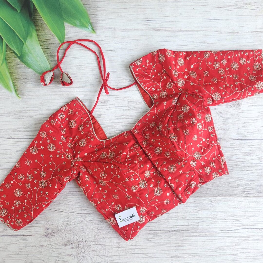 • Please refer our measurement chart for bust, length and waist size other measurements will vary based on design of blouse.