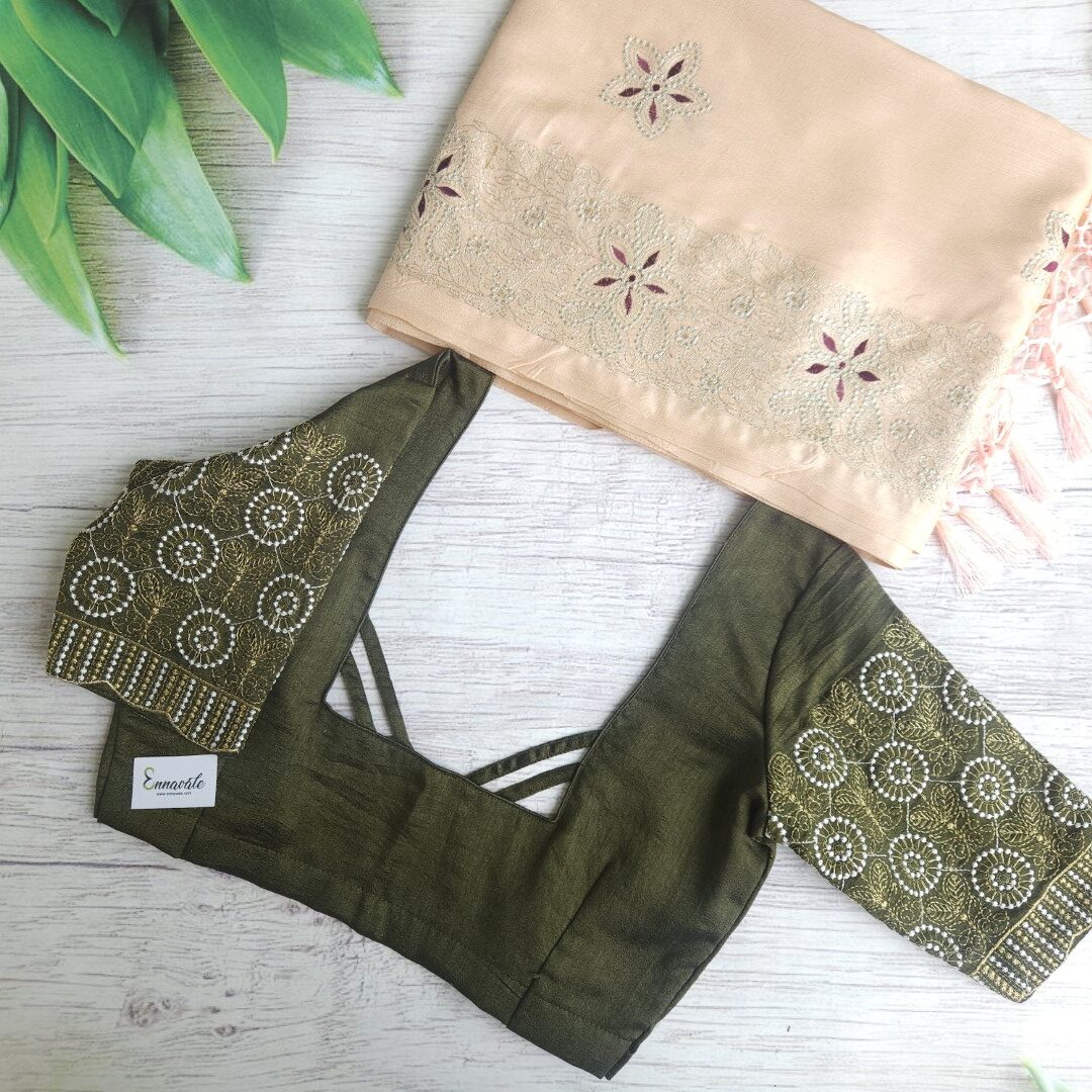 - Beautiful blouse with Princess cut & deep neck, Front hook and finished with Unique Neckline gives an rich and elegant look.