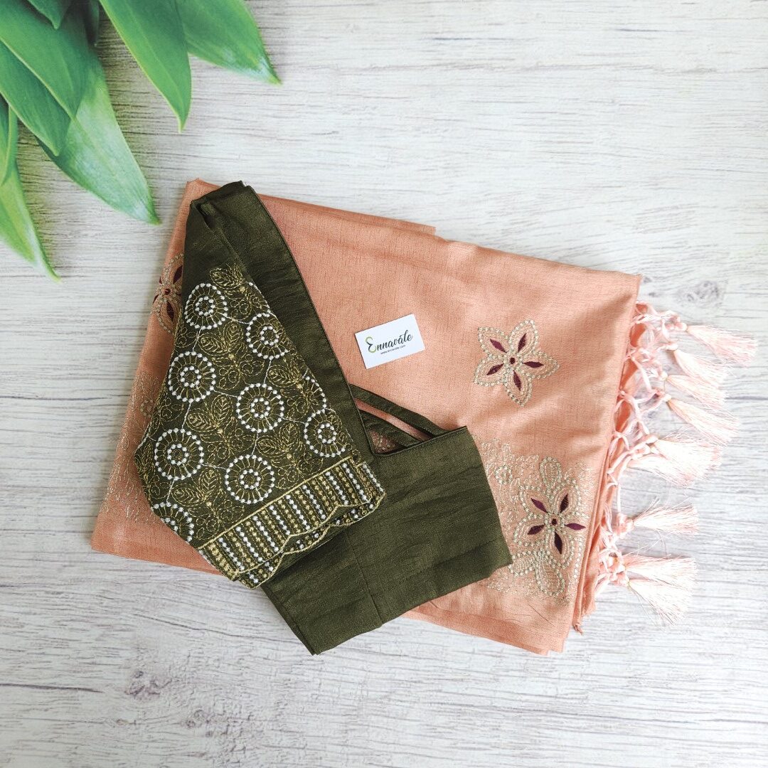 • Saree matched with perfect ready wear blouse.