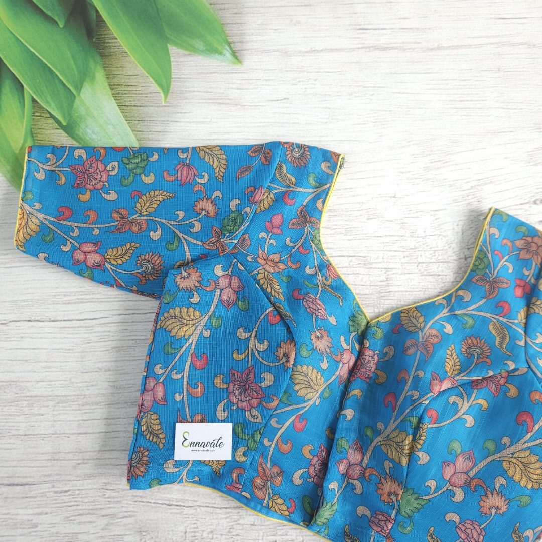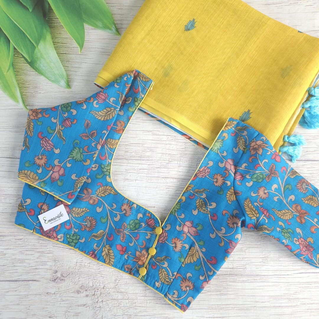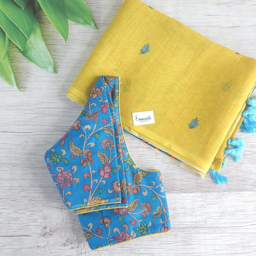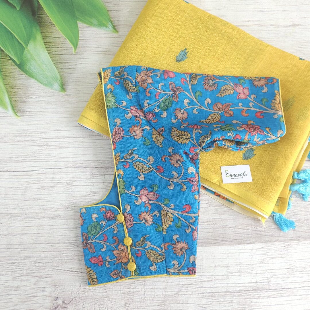 Linen Cotton Floral Printed Saree and ready to wear pattern Blouse