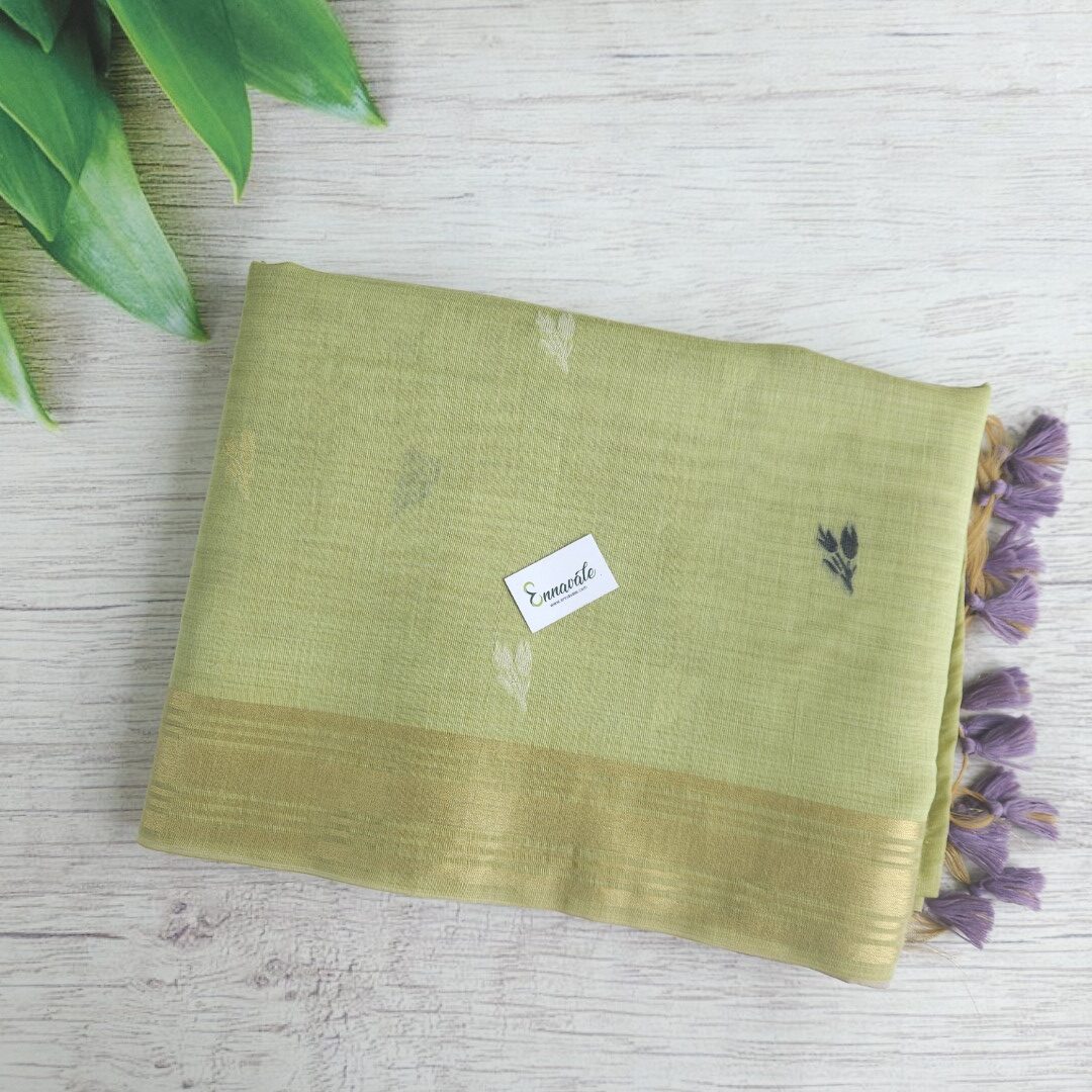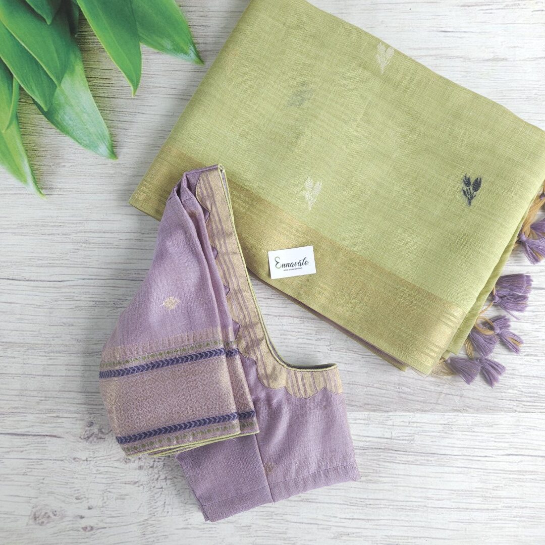 • Beautiful Muga Cotton Saree with Thread Work and Contrast ready to wear pattern Blouse