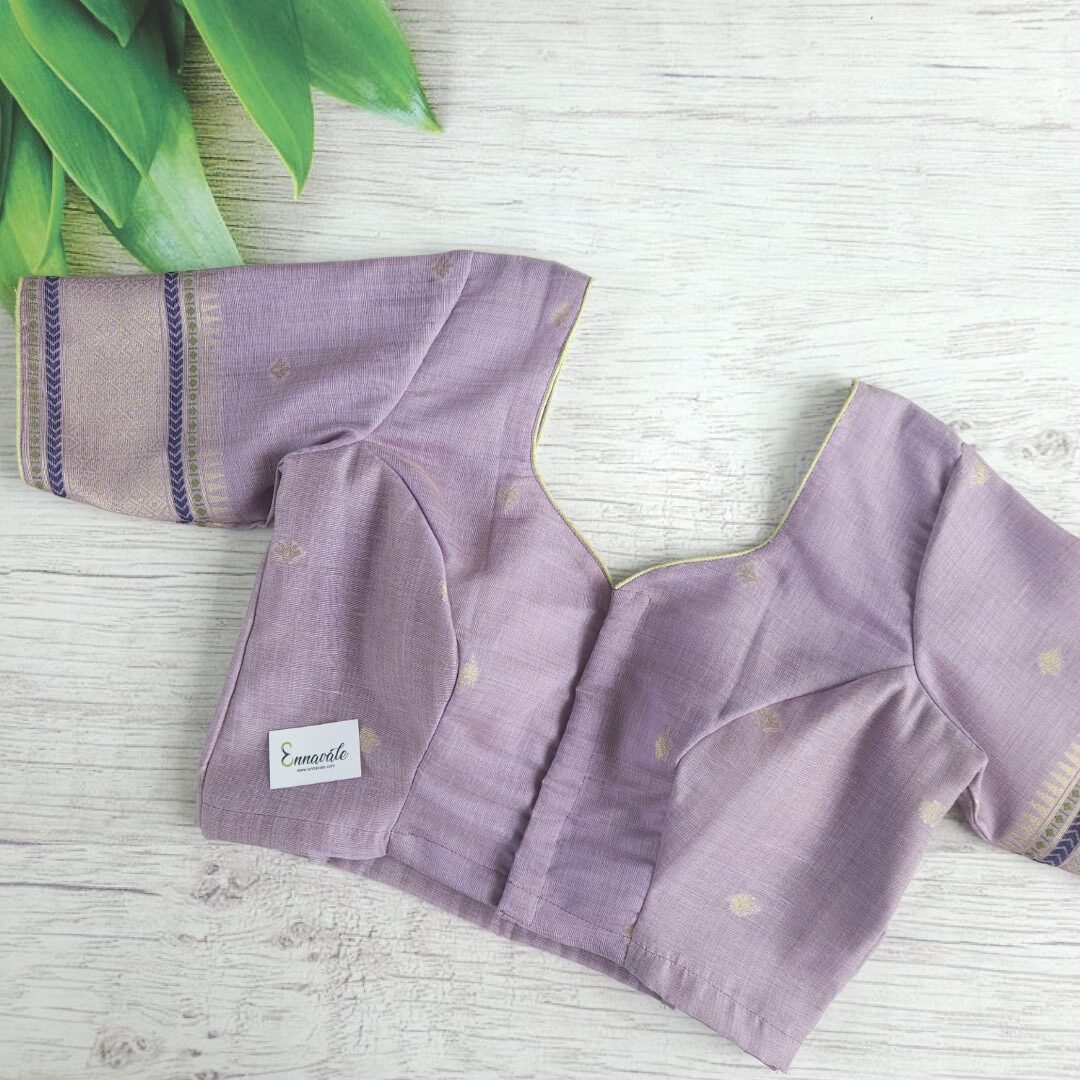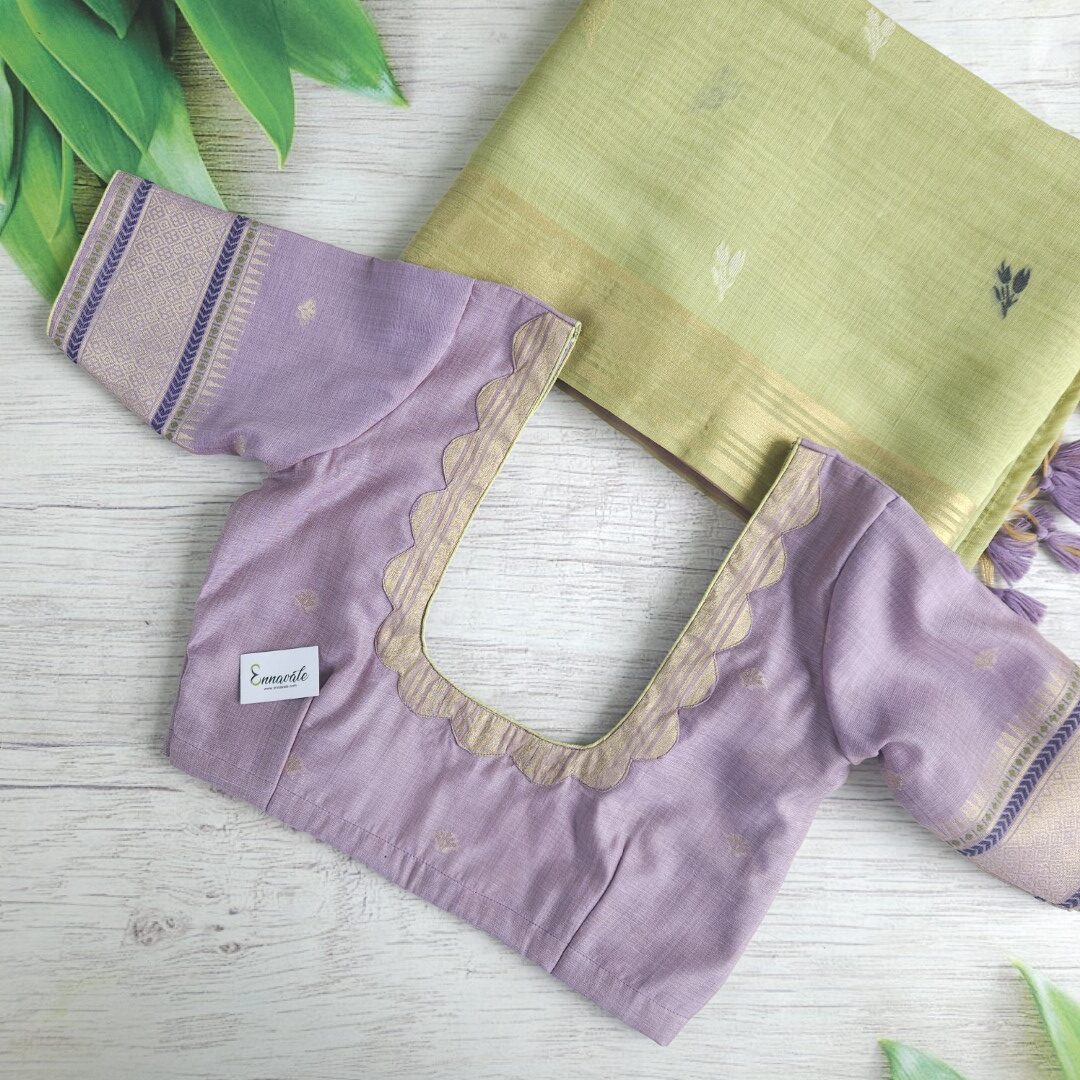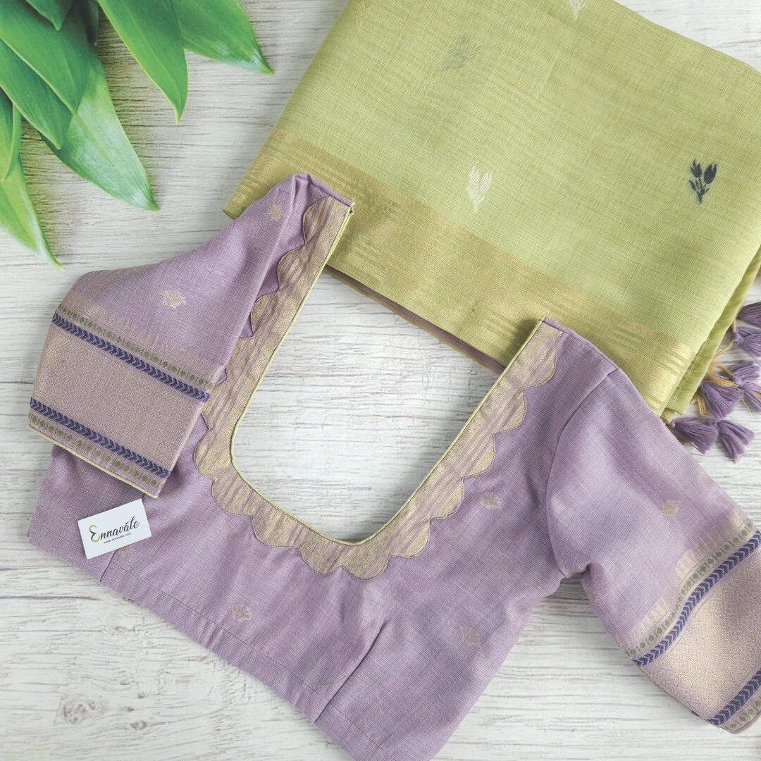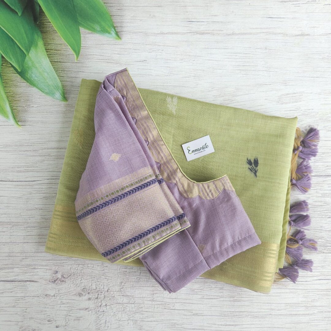 Beautiful Muga Cotton Saree with Thread Work and Contrast ready to wear pattern Blouse