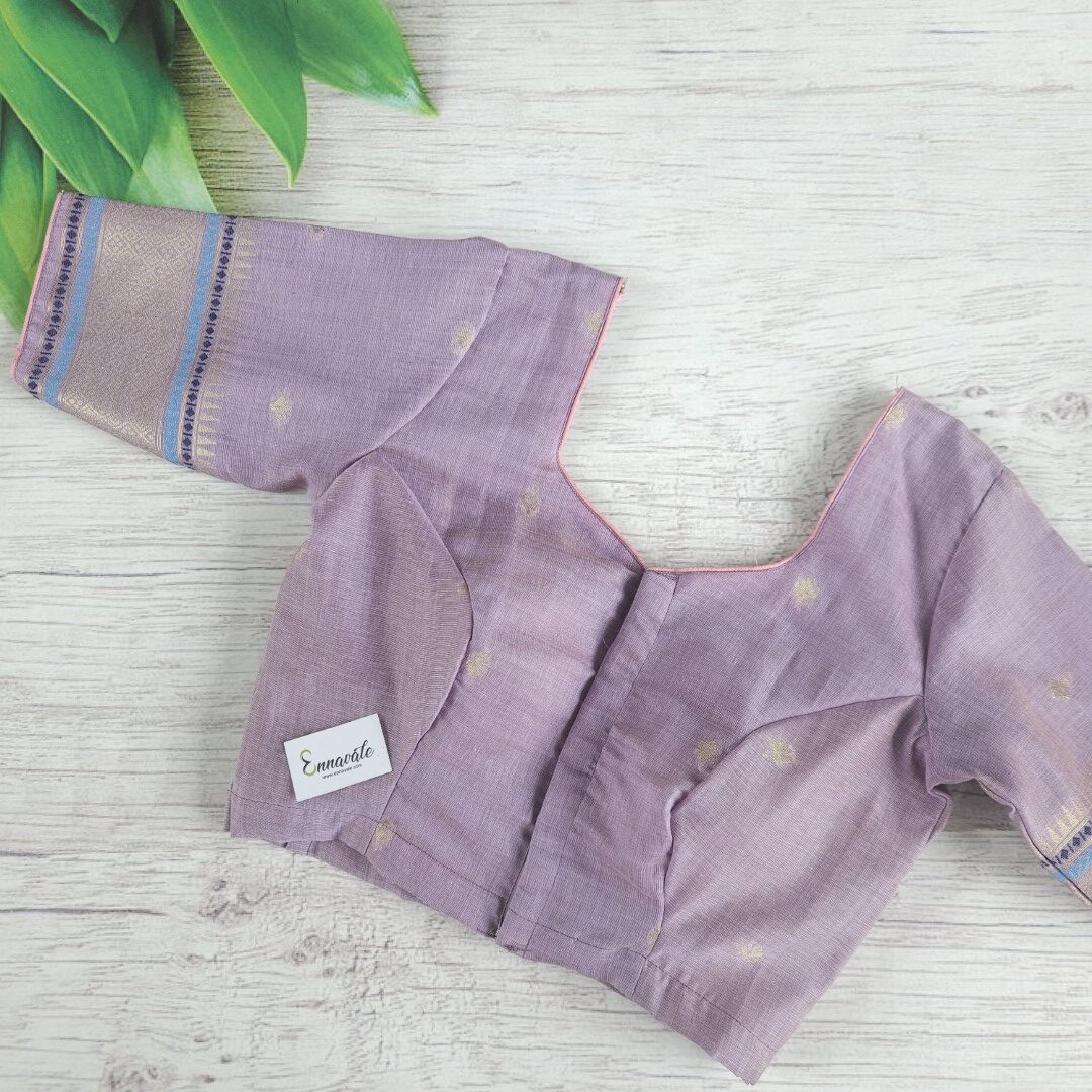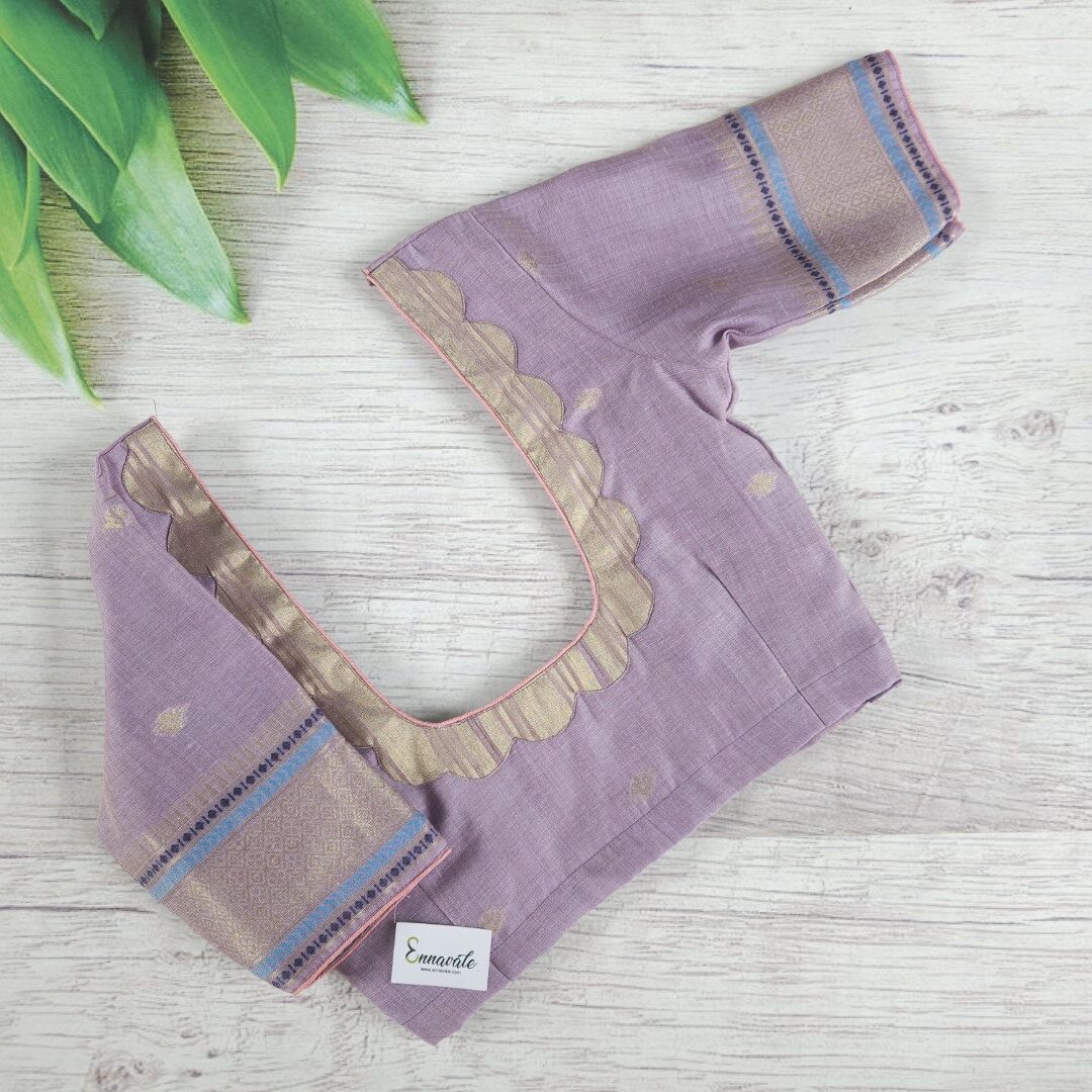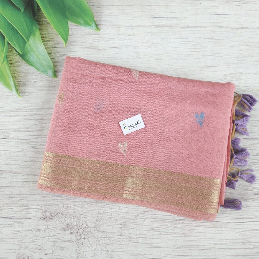 - Beautiful Muga Cotton Saree with Thread Work and Contrast ready to wear pattern Blouse