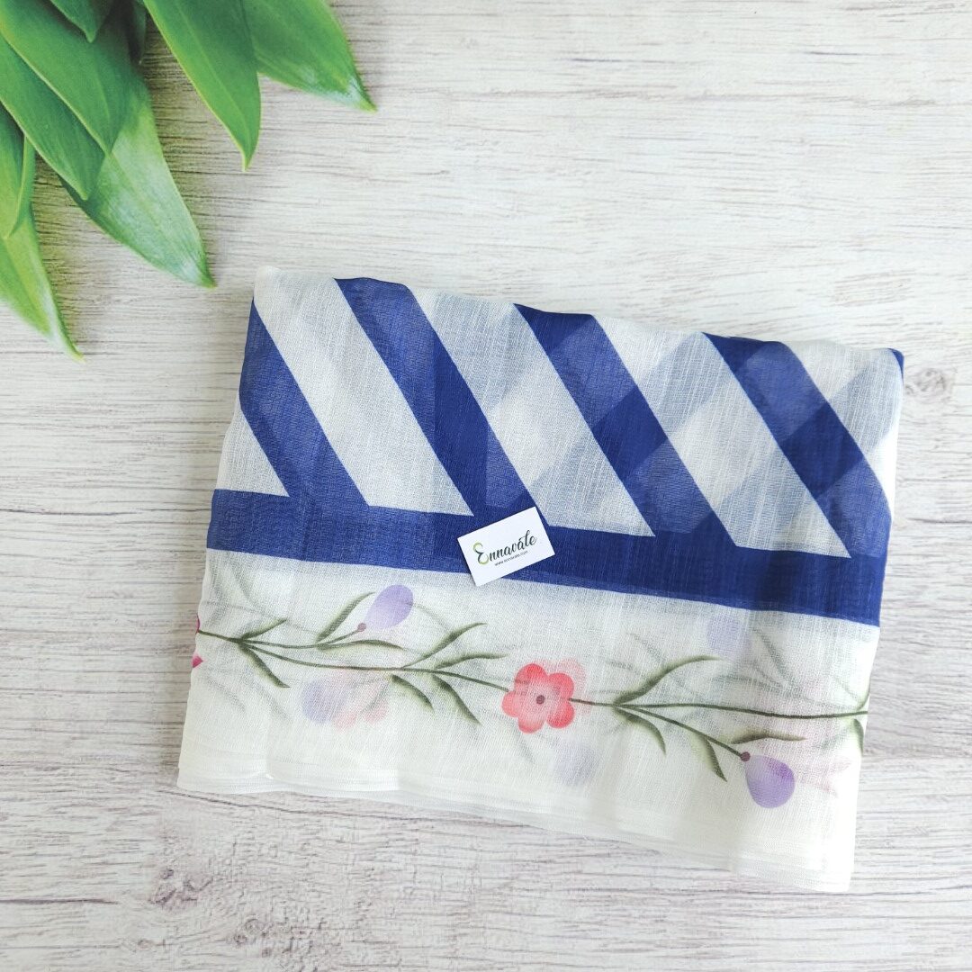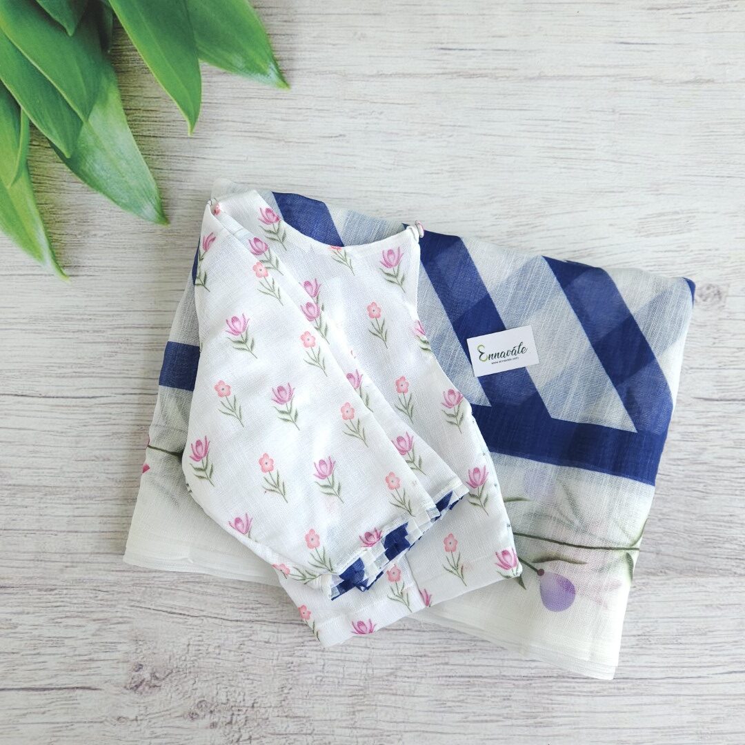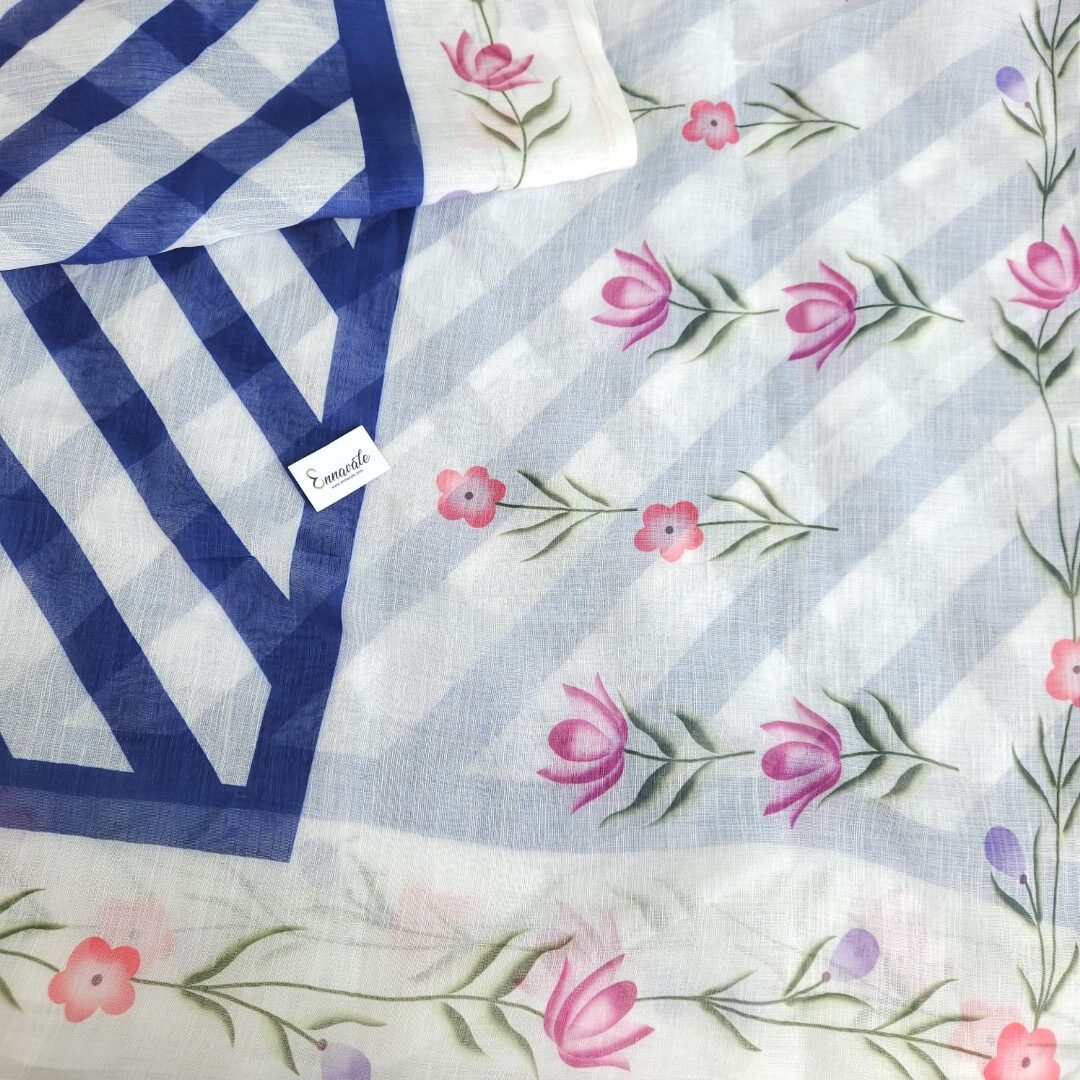 - Linen Cotton Floral Printed Saree and ready to wear pattern Blouse