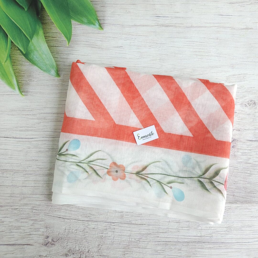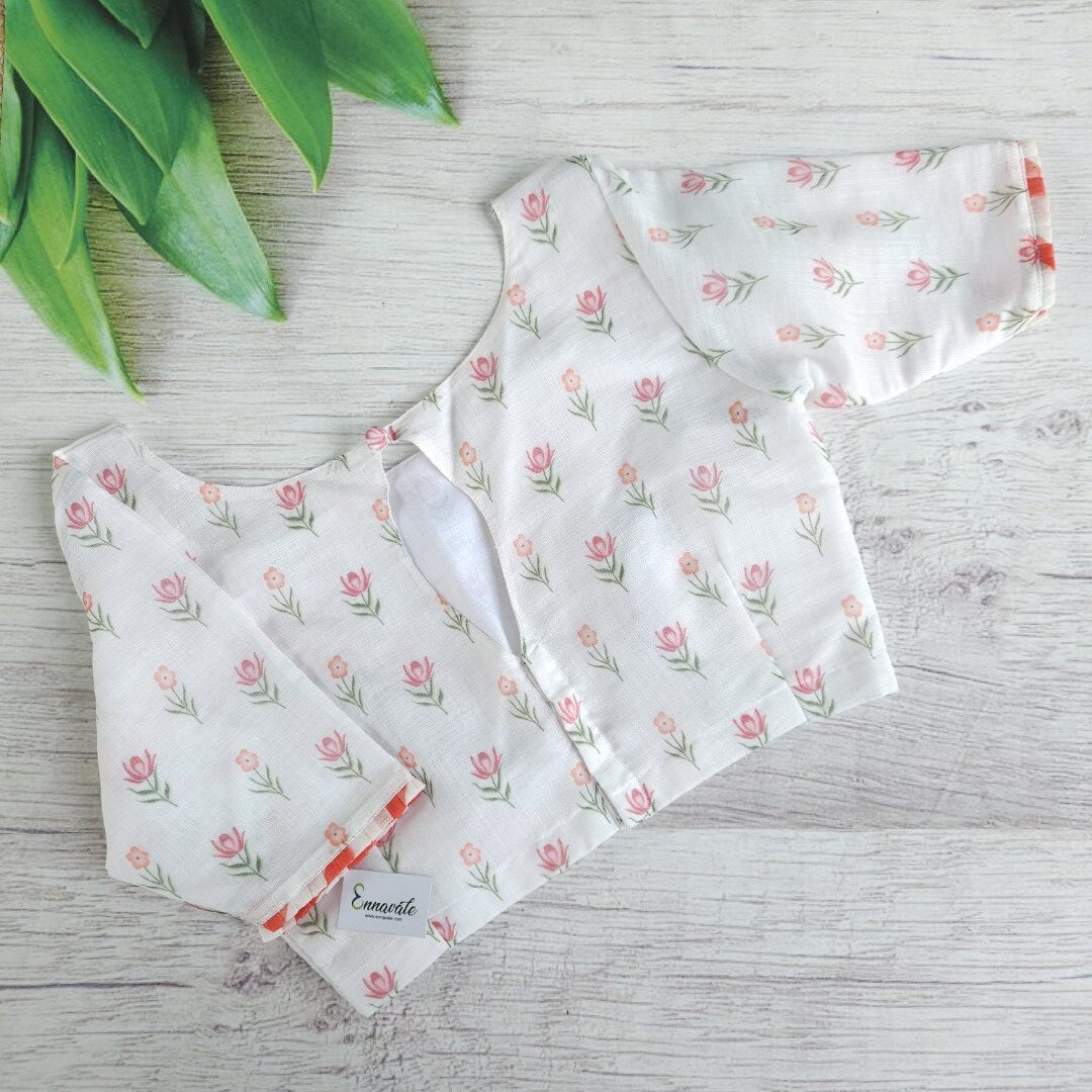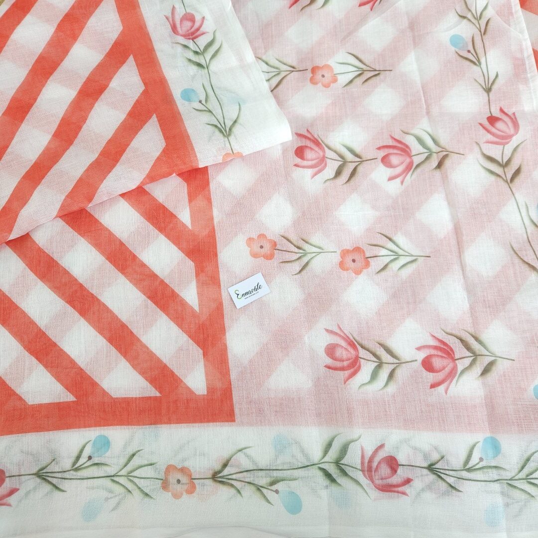 Linen Cotton Floral Printed Saree and ready to wear pattern Blouse