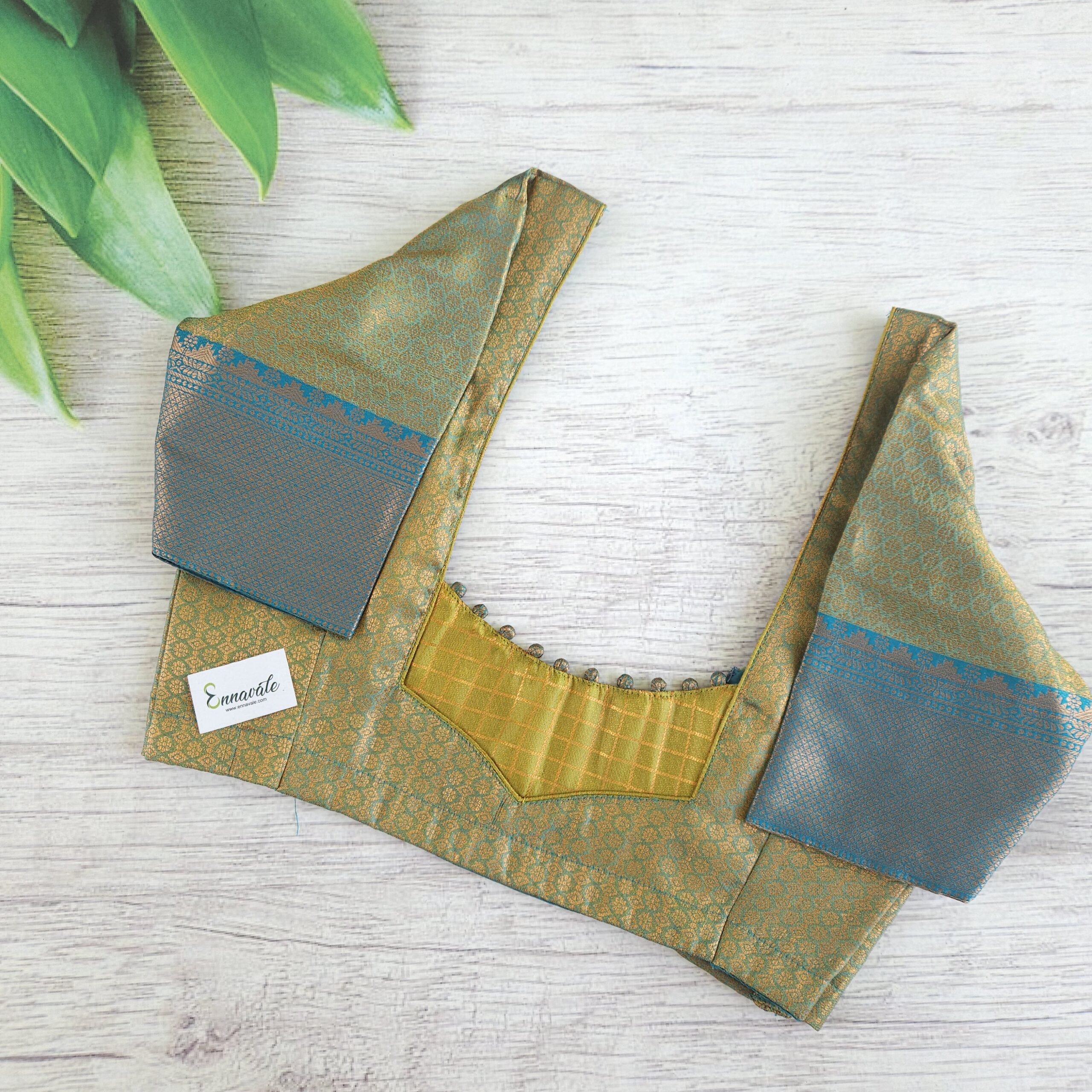 - Beautiful blouse with Princess cut & deep neck, Front hook and finished with Unique Neckline & gives an rich and elegant look.