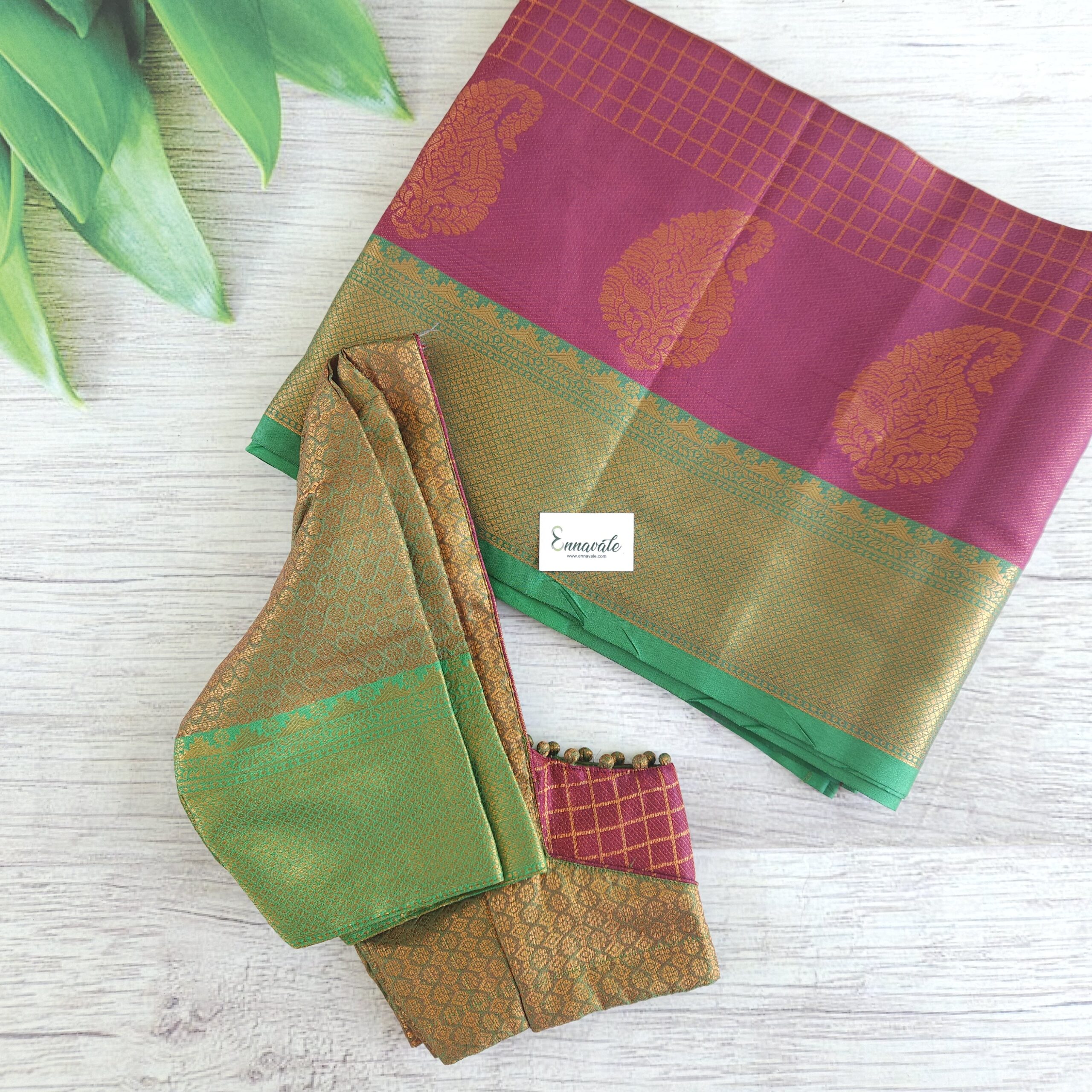 Kanchi Semi Silk saree with Zari work and ready to wear contrast pattern Blouse