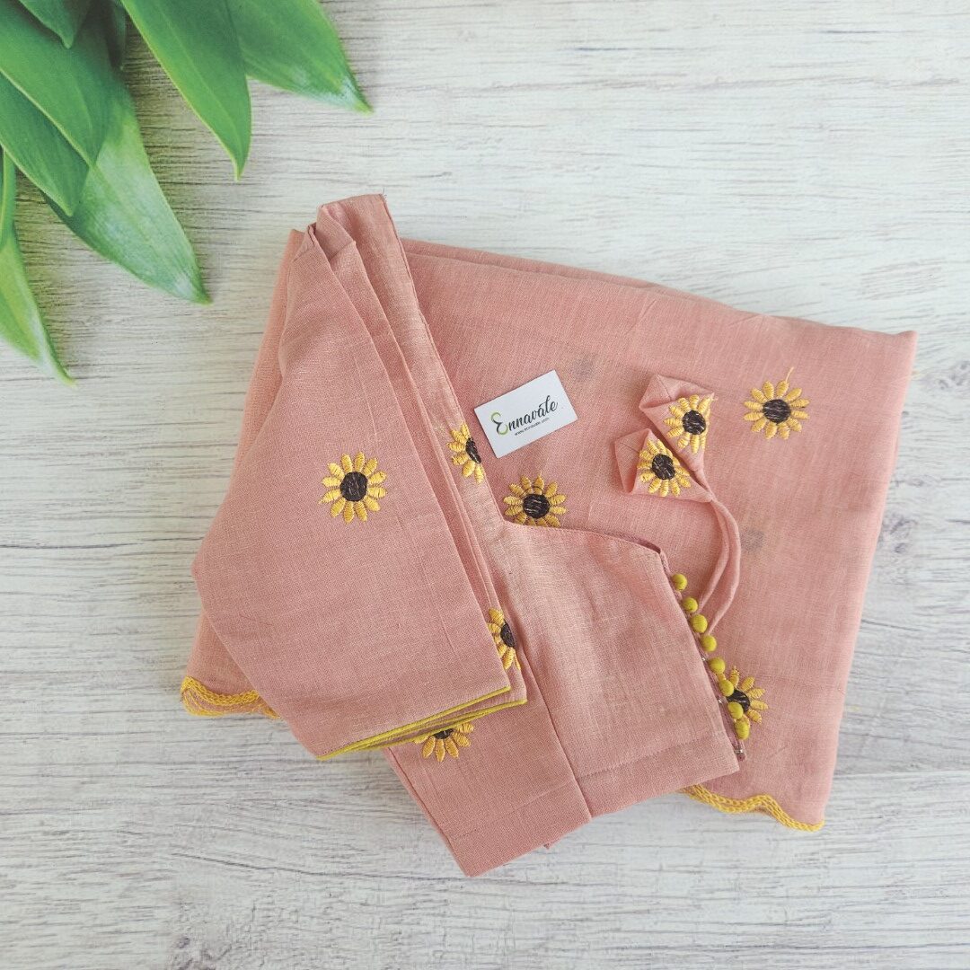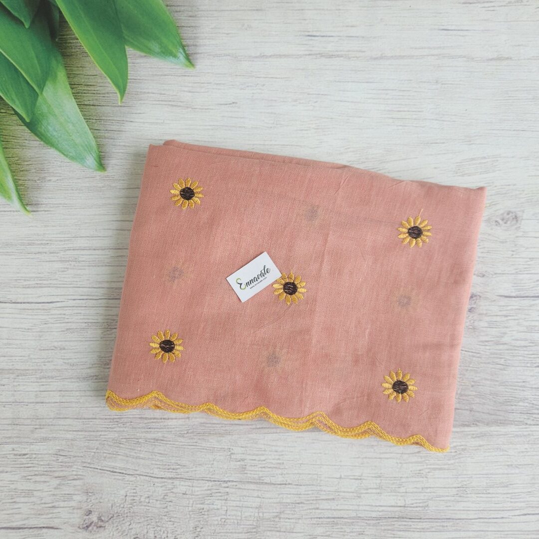 • Soft Cotton Floral Embriodery Saree and ready to Wear pattern Blouse