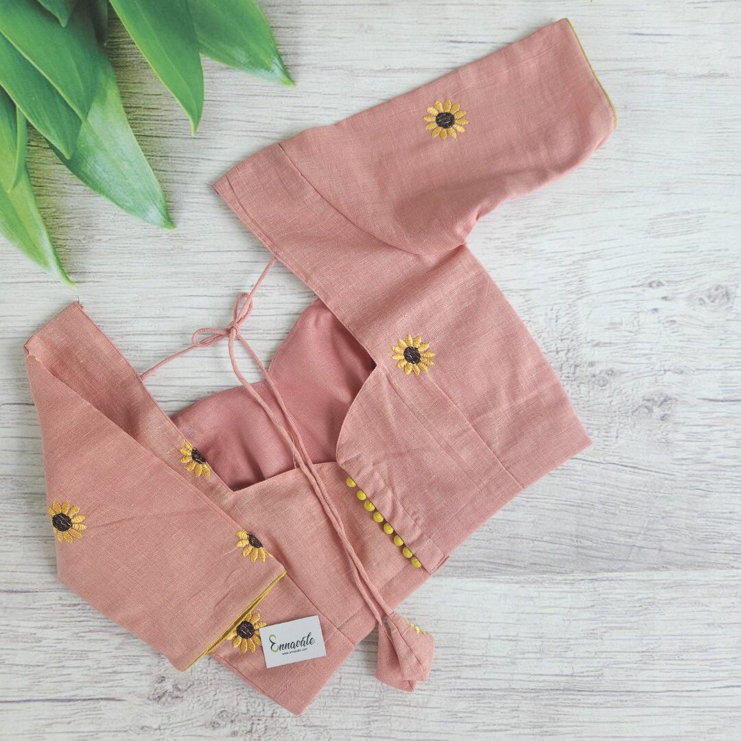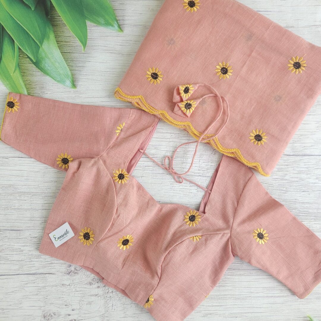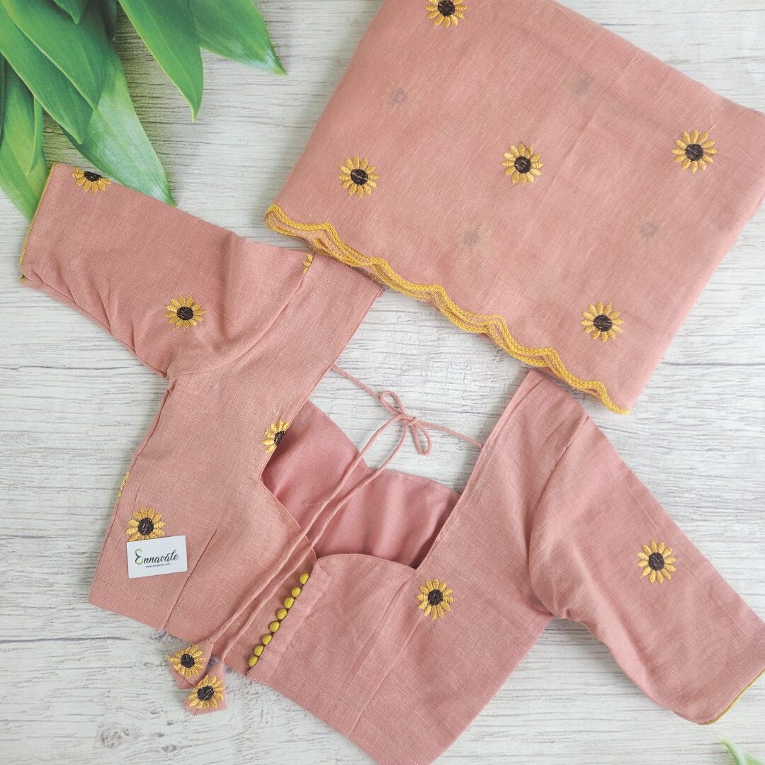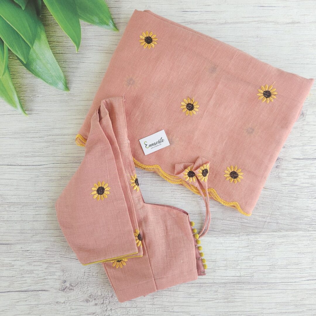 Soft Cotton Floral Embriodery Saree and ready to Wear pattern Blouse (Back Hooks)