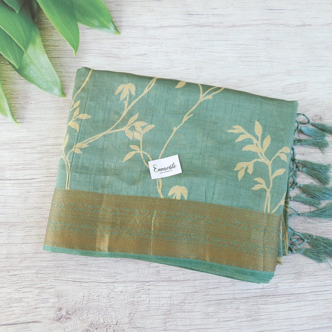 • Beautiful Tussar Semi Silk Saree and ready to Wear pattern Blouse