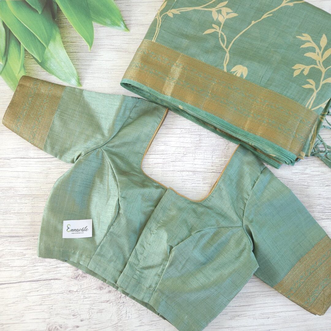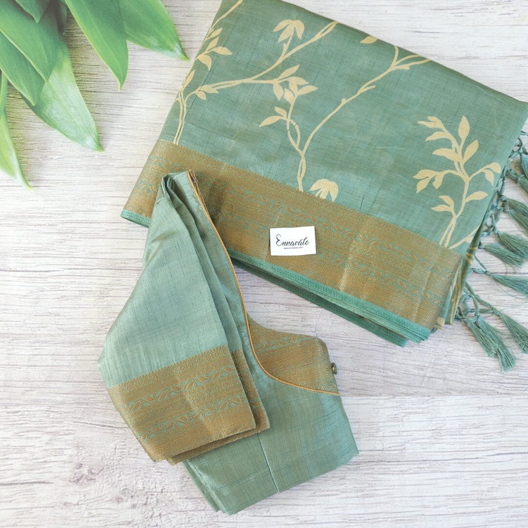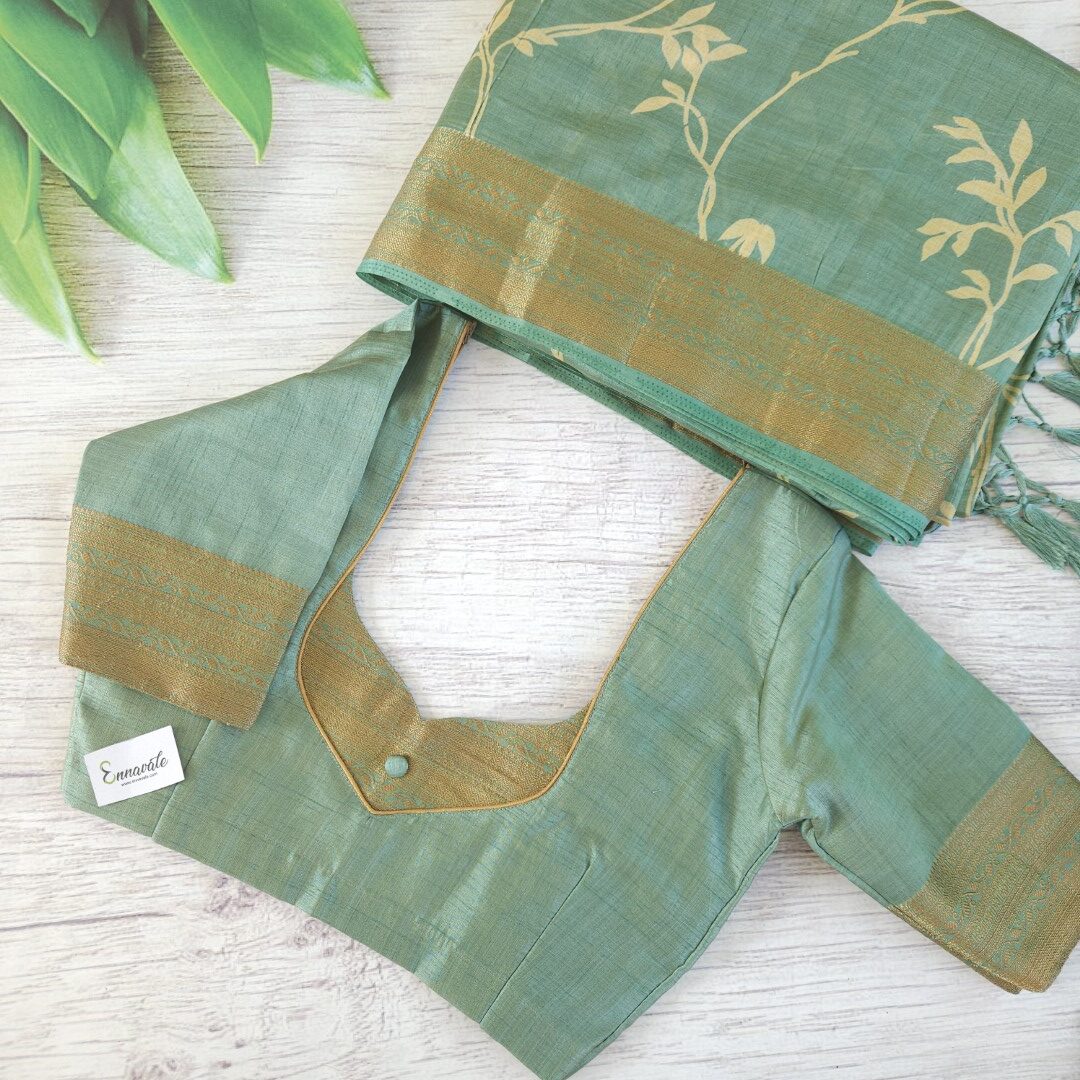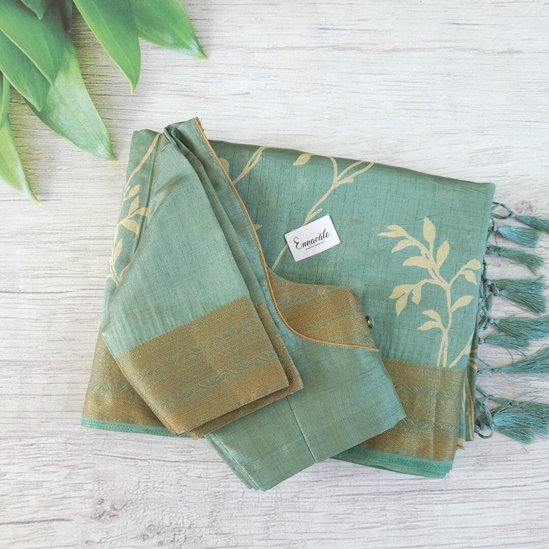 Beautiful Tussar Semi Silk Saree and ready to Wear pattern Blouse