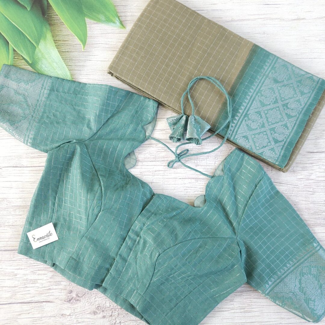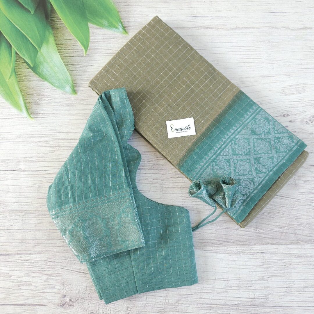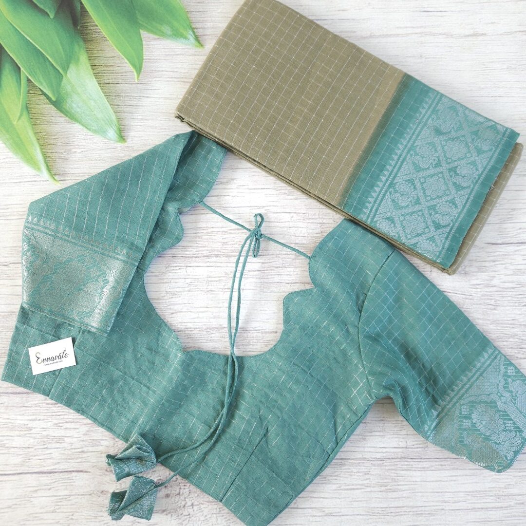 - Preimum Quality Zari Kattam Sungudi Cotton Saree and Contrast Sungudi Cotton ready to wear pattern Blouse