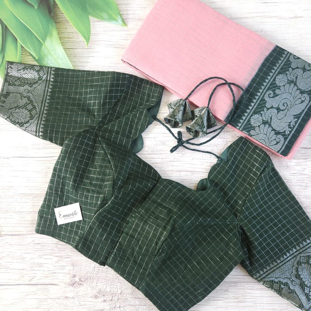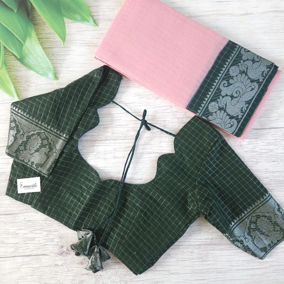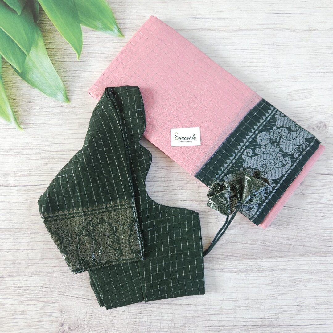 - Preimum Quality Zari Kattam Sungudi Cotton Saree and Contrast Sungudi Cotton ready to wear pattern Blouse