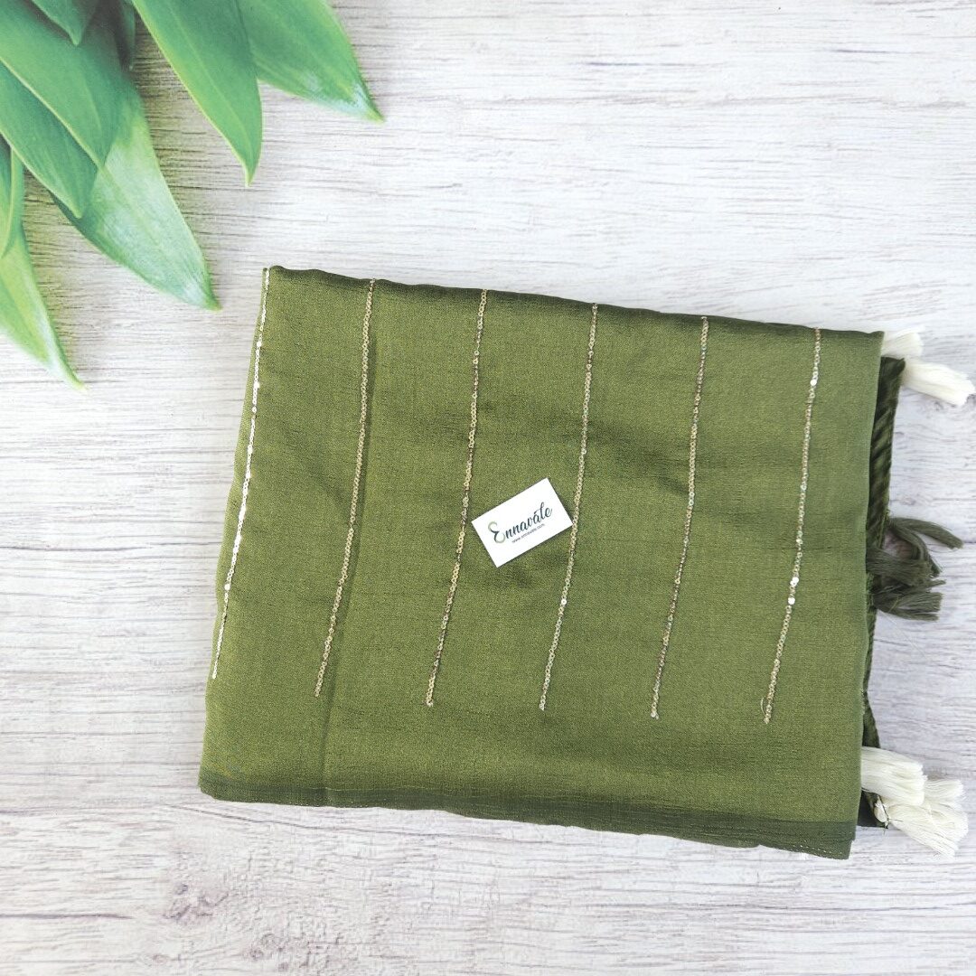 • Mulsilk Sequin work Saree paired with Contrast ready to Wear pattern Blouse