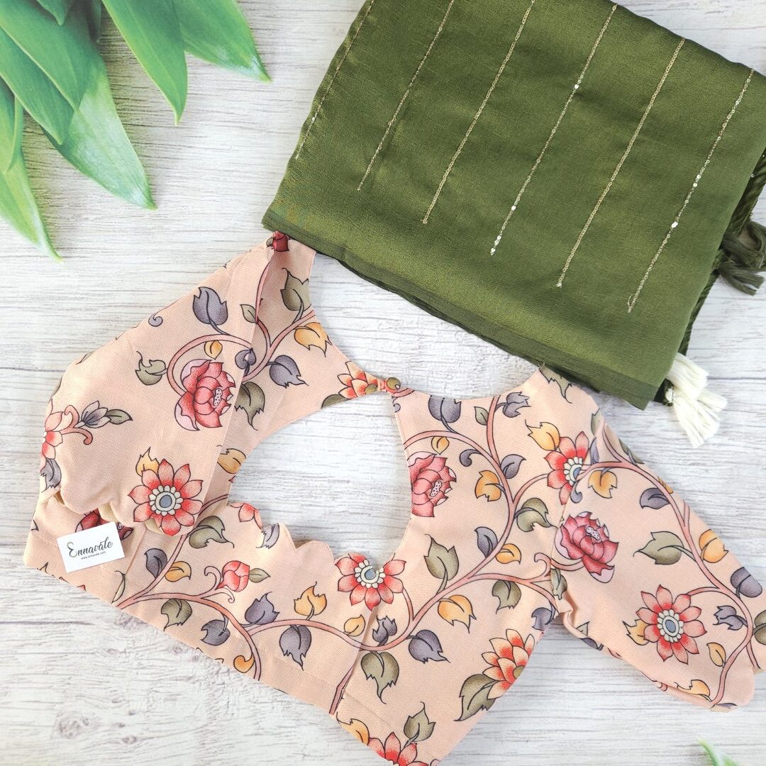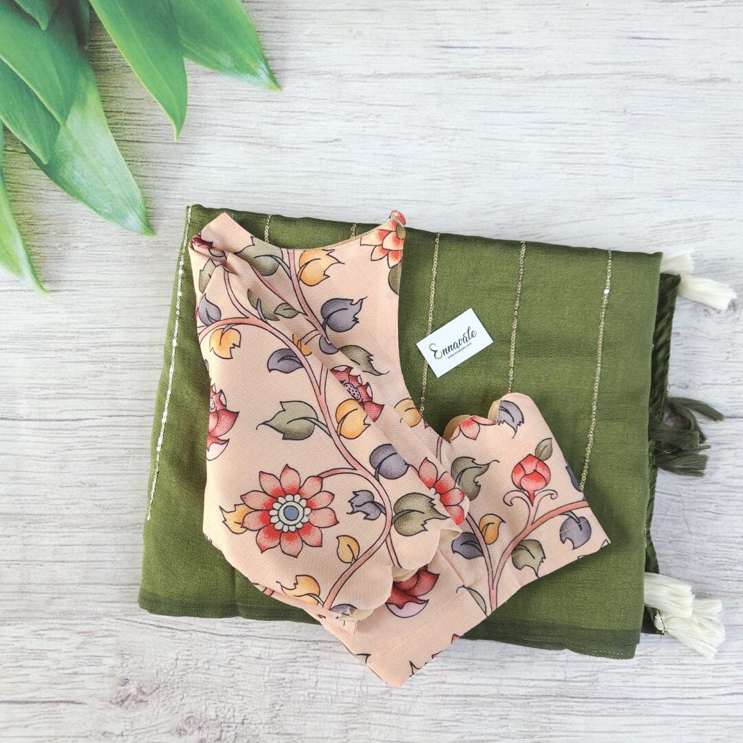Mulsilk Sequin work Saree paired with Contrast ready to Wear pattern Blouse (Front Hooks)