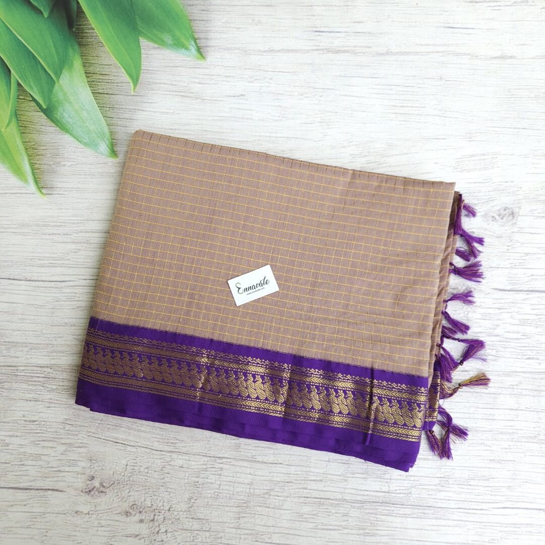 - Beautiful Cotton Zari Border Saree and ready to Wear pattern Blouse