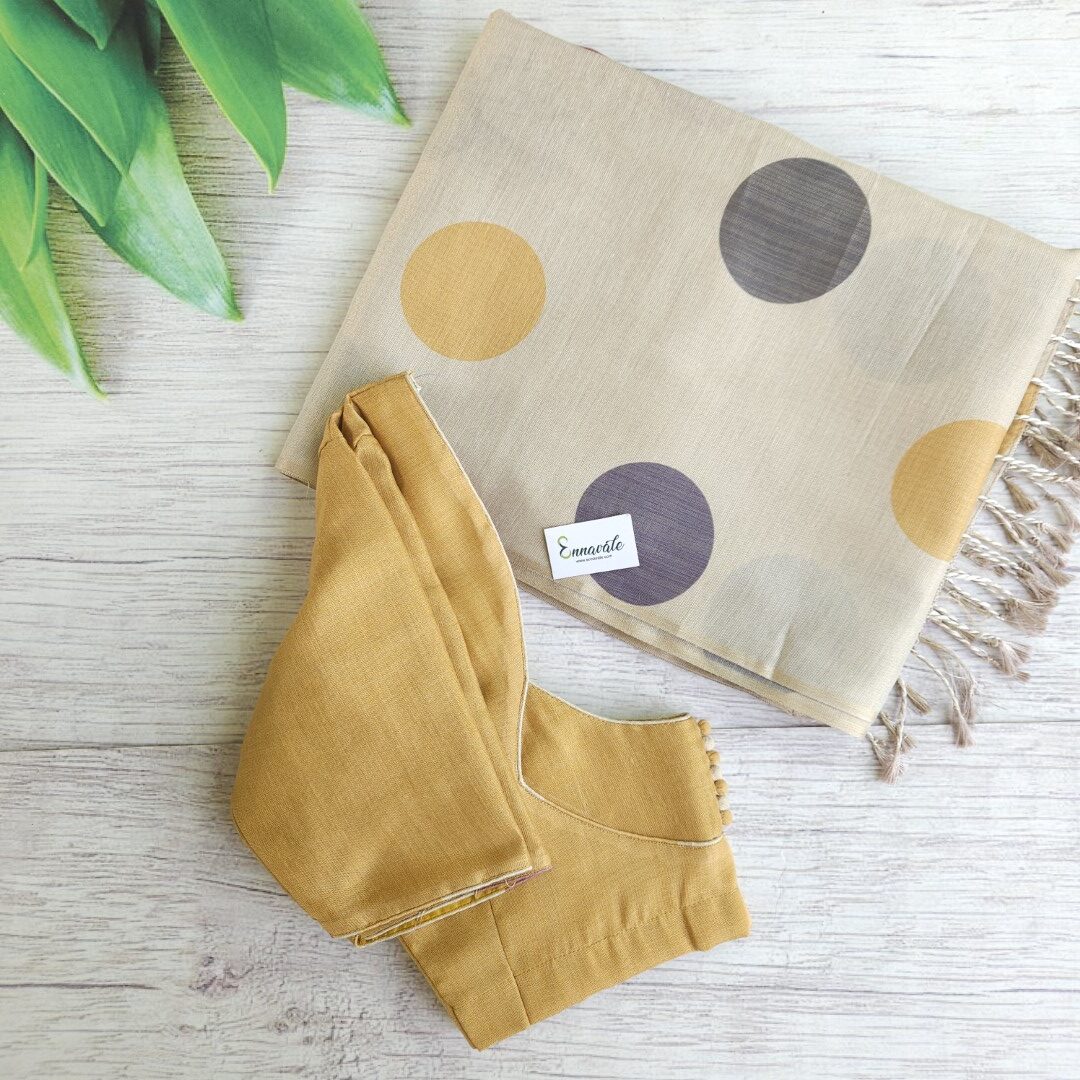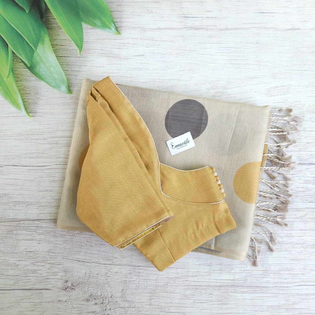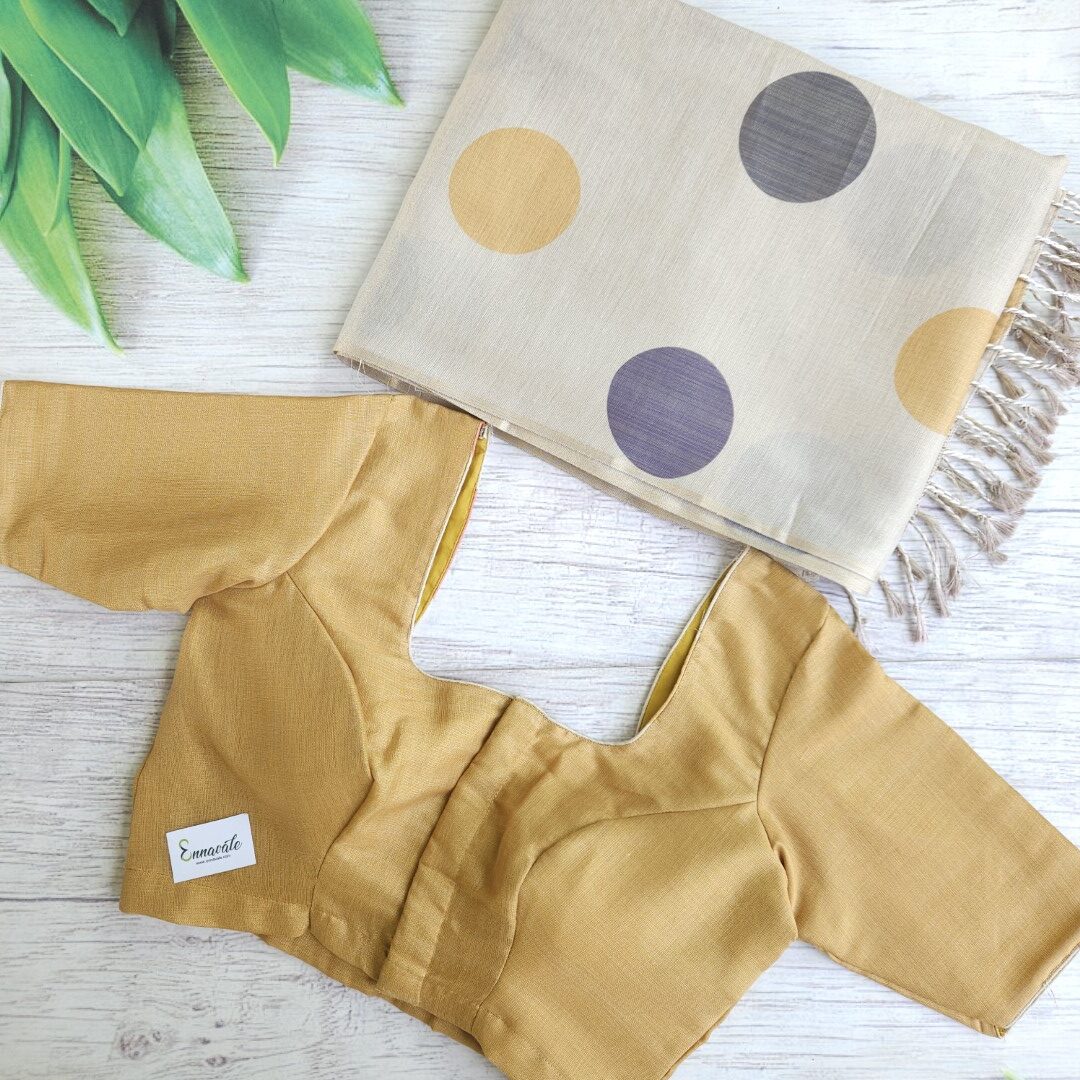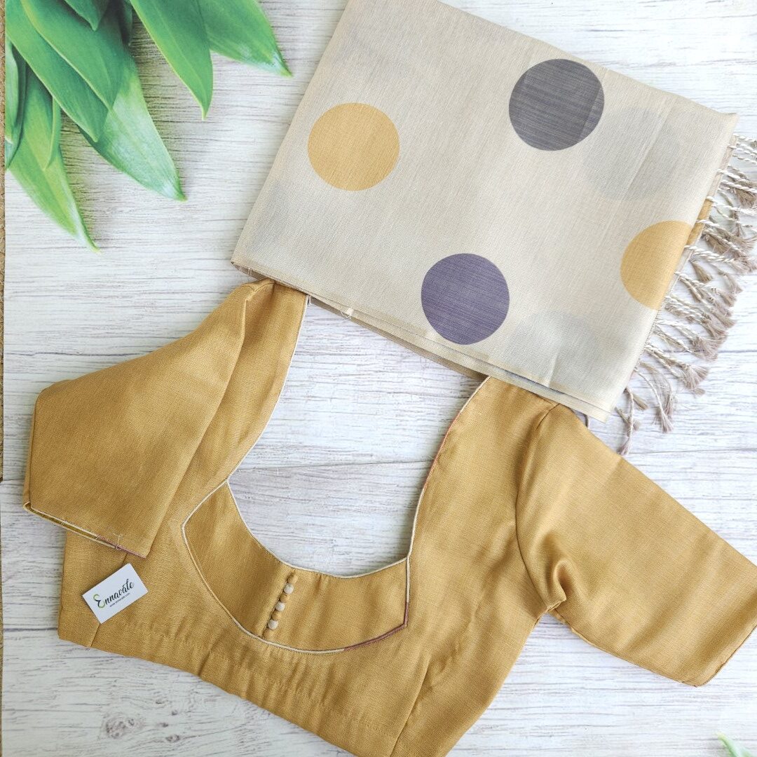 - Soft Tissue Printed Saree and ready to Wear pattern Blouse