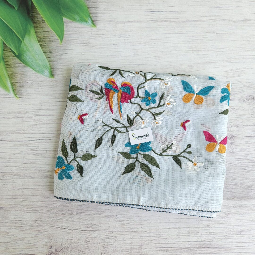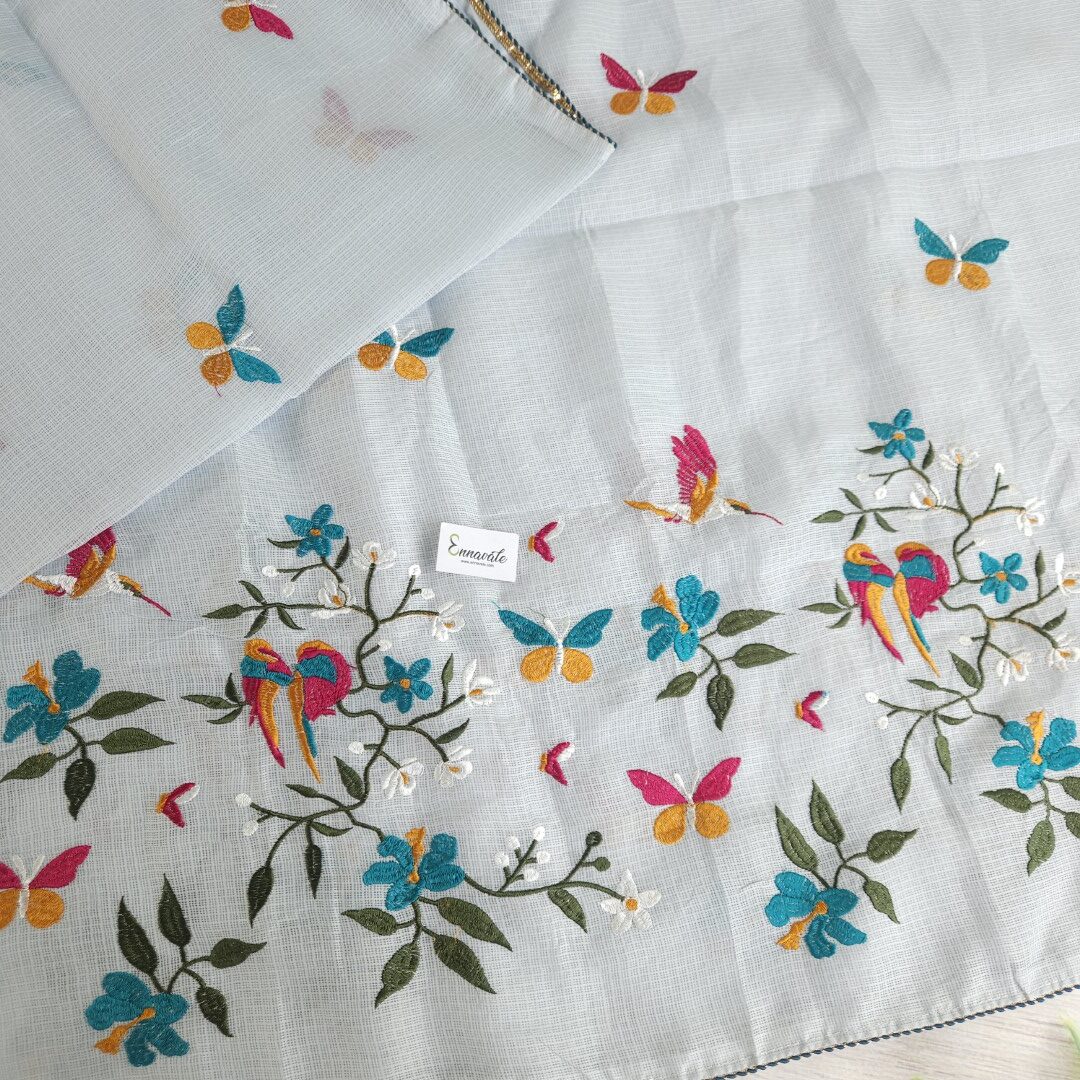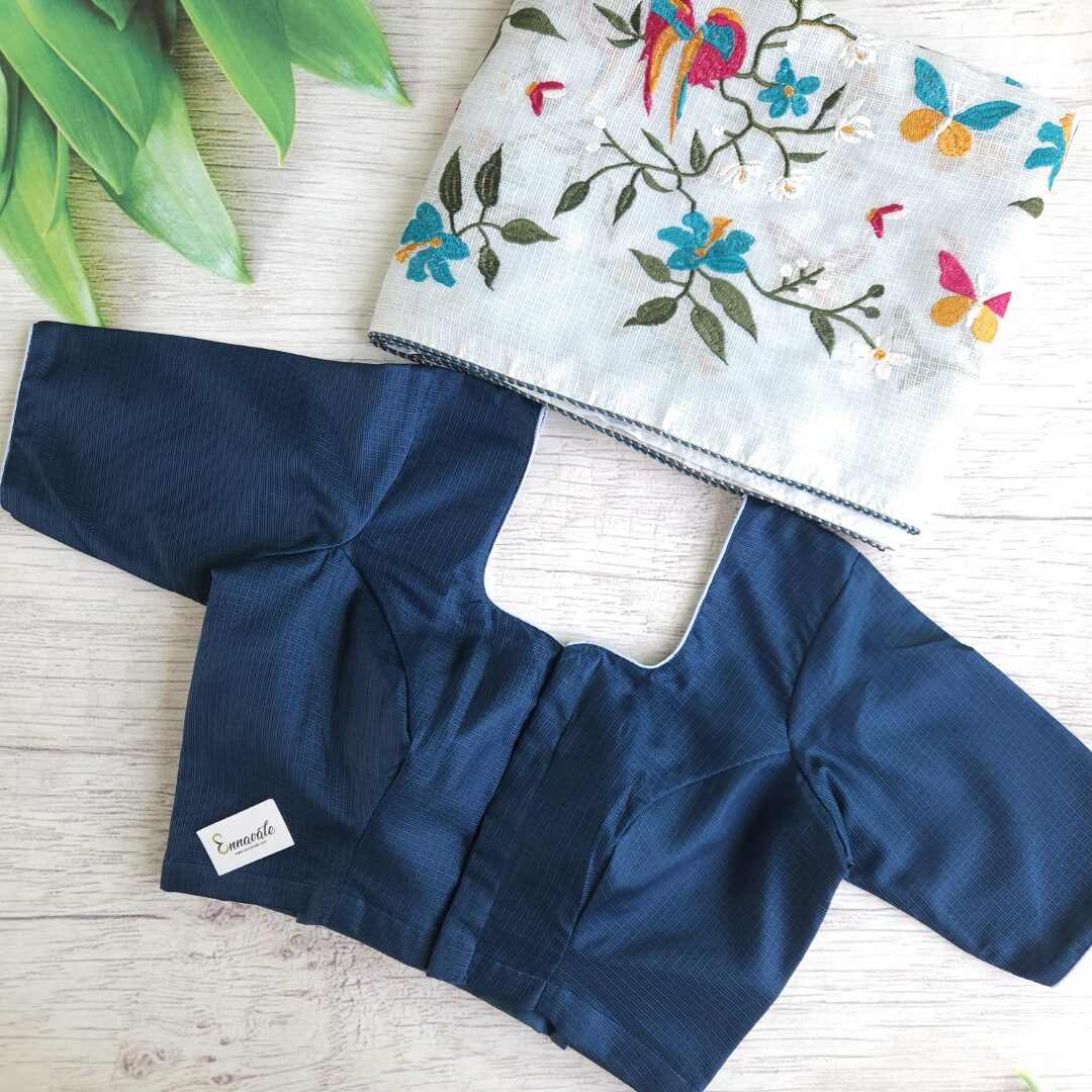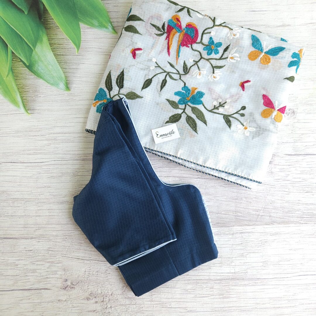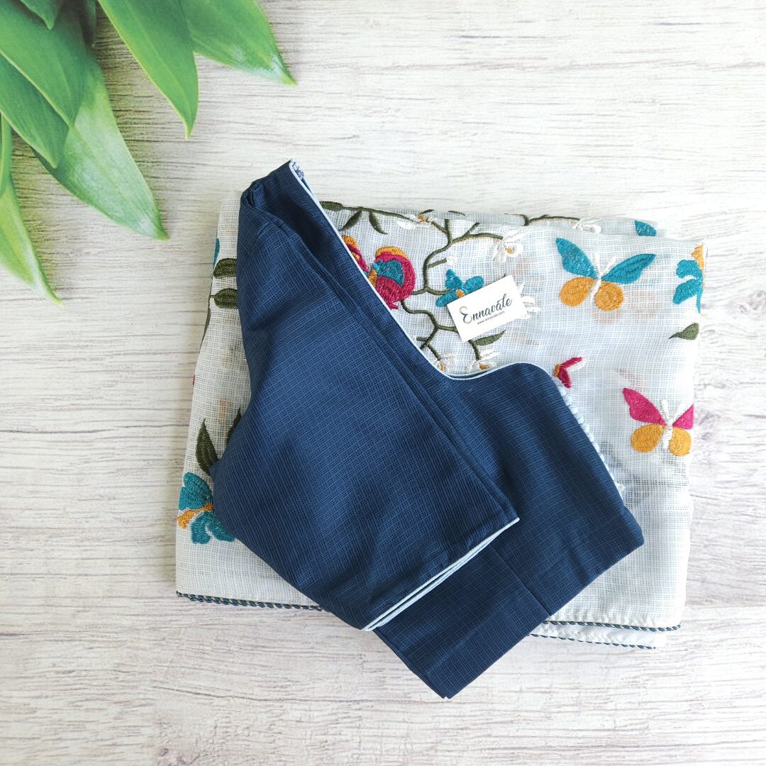- Kota Cotton Embroidery Saree and Contrast ready to Wear pattern Blouse