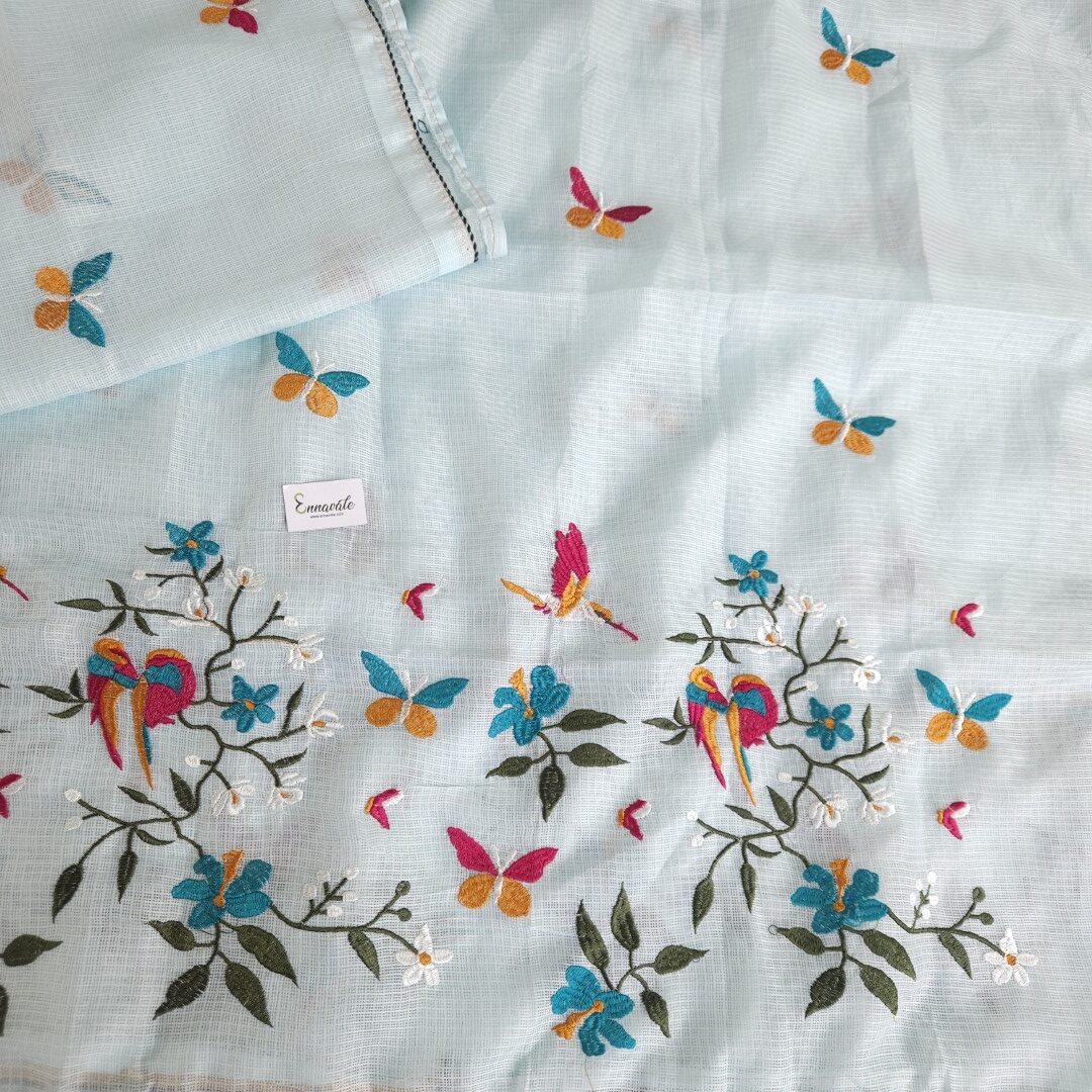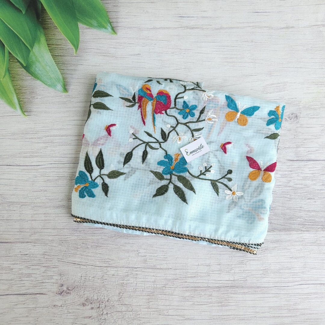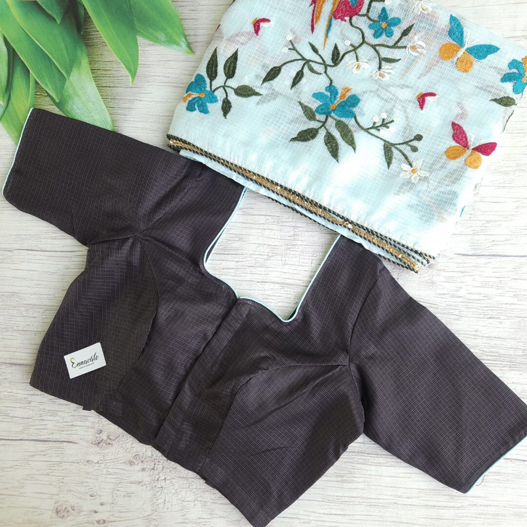 - Kota Cotton Embroidery Saree and Contrast ready to Wear pattern Blouse